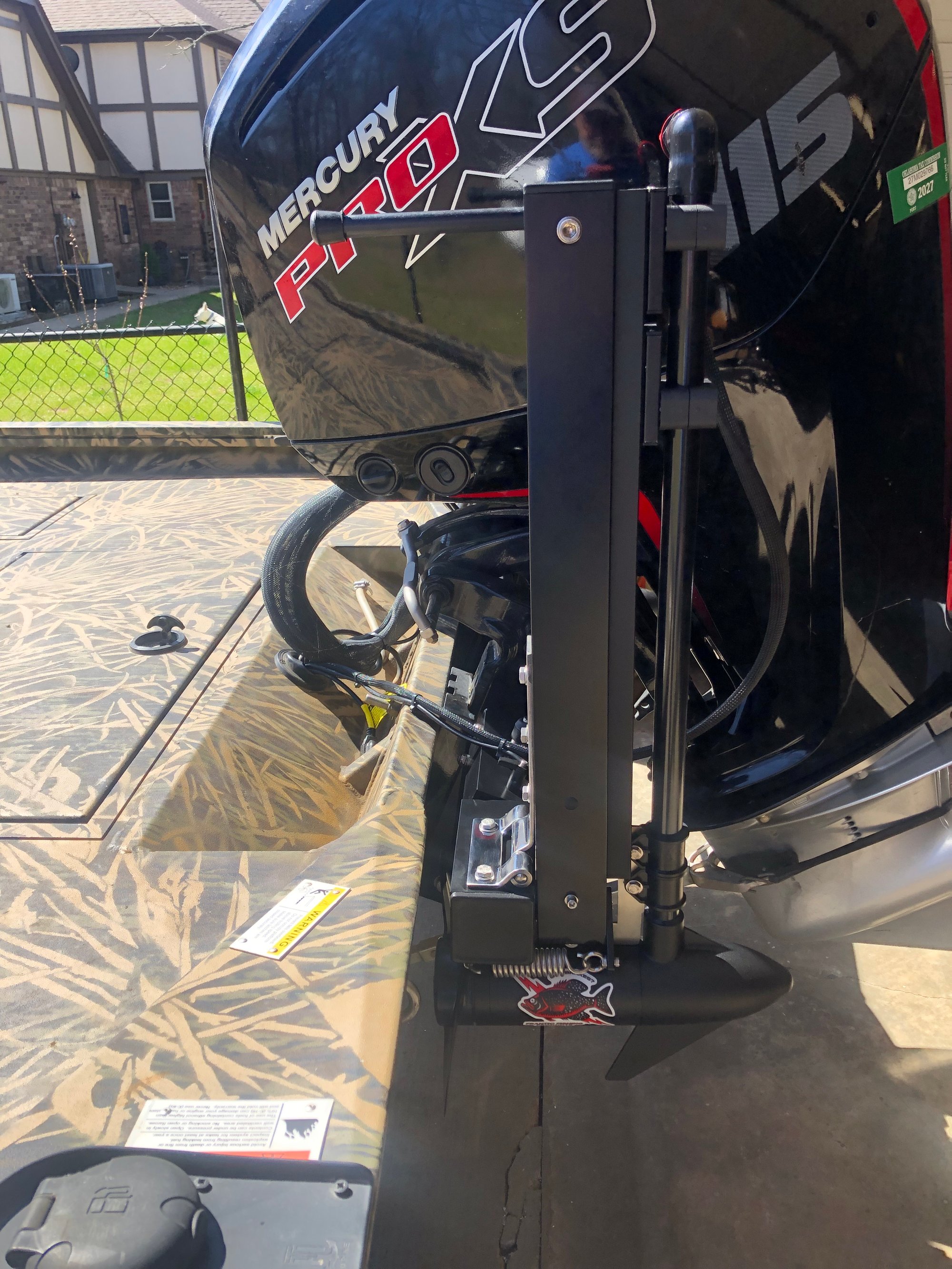 All new redesigned Outlaw Shorty kit. Auto deploy, auto retract now with the auto box. auto reset breakaway the first in the industry. 40 & 45 lb motors, Kipawa or Minn kota mkp-6 props. All 6061 aluminum construction, includes the juice box with variable speed , reverse & forward mode, All mounting brackets included for Talon's, Jackplate, & Sandwich plate applications. 12 volt system. This kit checks all the boxes. This kit is heavy! it will add 40-45 lbs of weight per side of your transom.If you wish to get one please EMAIL with photos of your transom area , to [email protected] This kit will not fit Bass Cat's, Skeeters, Phoenix, or any bass boat with an inset transom. Installation video now on You tube. link at bottom of home page.